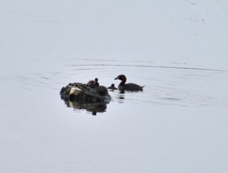 弥富市の三ツ又池公園では、カイツブリが何組も巣造りをして産卵、育雛(いくすう)しています。