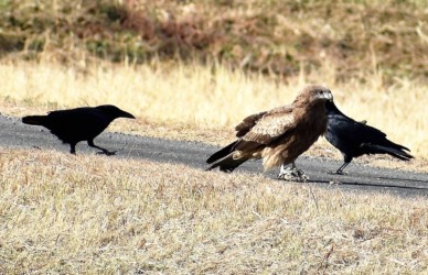 姿形はとても強そうですが、いつもカラスに追いかけられているのを見ています。