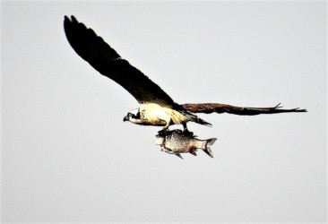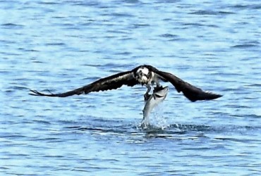 獲物は主に魚で、50㎝を超えるコイやボラなどを、上空でホバリングして足から水中に突っ込んでとらえます。