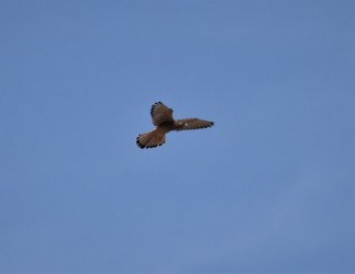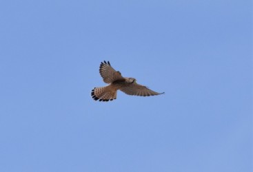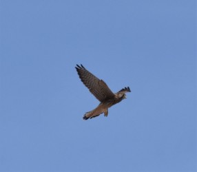 チョウゲンボウは、空中で立ち止まるホバリングをして、獲物の昆虫を探します。