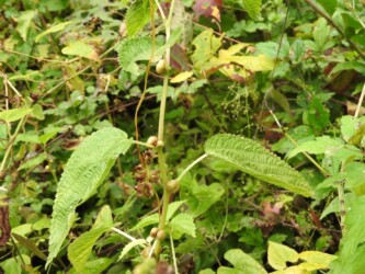 秋になって天童周辺の山道や叢を歩いて色々な植物に出会いましたが、珍しくて驚いた植物の中にムカゴイラクサがあります。