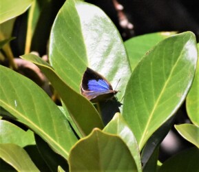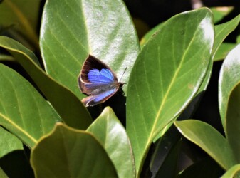一昨年の11月に弥富市「こどもの国」のカシの木の葉の上で初めて紫色の紋様があるムラサキシジミを見かけました。
