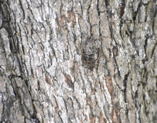 幹の色と同じ灰色なのでよく見ないと分かりません。