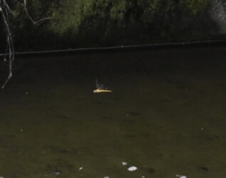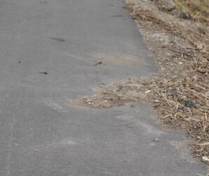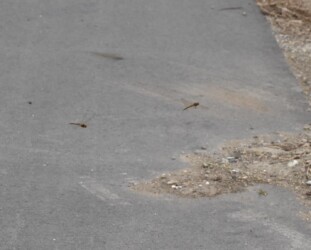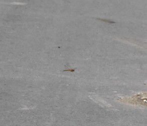 今回の道路上を行き交うウスバキトンボたちは、コシアキトンボの例から類推すると、未成熟個体の集まりではないかと思われます。