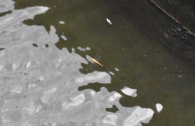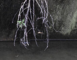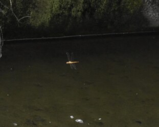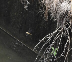 その後歩いていくと鍋蓋新田の用水路で、縄張りの巡回飛行しているウスバキトンボを見かけました。