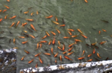 「三福の金魚養殖は今では2軒だけで、担い手となる子どもたちが継がなくなってきている。息子は銀行員だが、上から指示されて仕事するよりは、自分で好きなようにできる金魚養殖をやったらとずーっと勧めていたが、やっと仕事を辞めて養殖の仕事をするようになった。」と話していました。「この仕事でも銀行に勤めていた時より収入は良いのですよ。」と話してくれました。