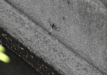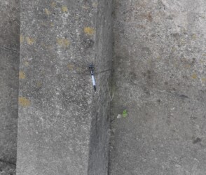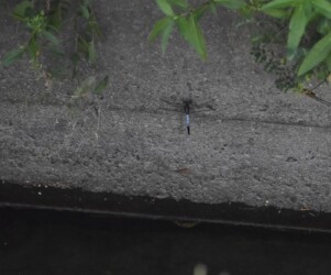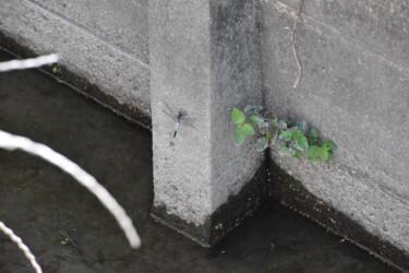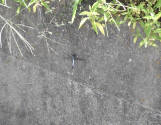 シオカラトンボも暑さを避けるために棒や茎の日陰側にとまることはありますが、この用水路の壁にとまるのは最高の避暑対策だといって良いでしょう。