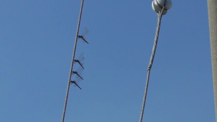 ギンヤンマは午後過ぎの時刻頃には、飛翔しないで葉陰にとまって避難しています。