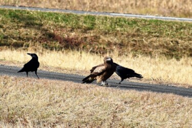 トビは獲物に飛びかかって仕留めるのは得意でないので、動物の死骸やバッタ類などを捕っているようです。