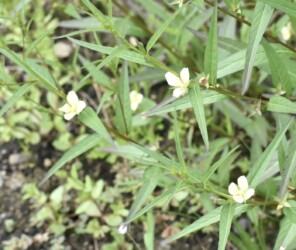数日前に飛島村服岡の水田の間の農道を車で走っていると、水田との間の畔に白い花を咲かせる植物がありました。