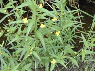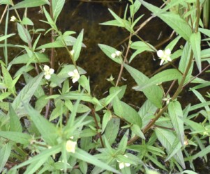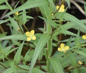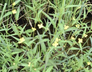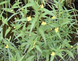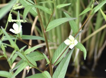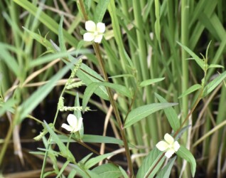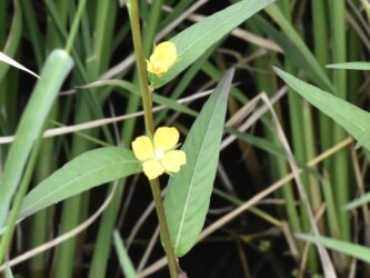 EVERGREEN(植物図鑑)には「河川沿いの湿地や池沼の縁、水田などで見られる高さ80~100㎝の一年草。茎や葉がしばしば紫色を帯びます。茎は直立し、3~4稜がありよく枝分かれします。葉は互生する単葉で、基部が茎の稜とつながって翼(ひれ)となります。花は葉腋から単生し、径3㎝ほどの黄色い4弁花です。花は水平に開いて、散りやすいです。果実は長さ1~2㎝ほどの蒴果で、4稜があり四角柱状となり、上端に4枚の萼が残ります。来歴は1954年に徳島市、1955年に松山市で採集され、以後帰化植物として広がっています。分布または原産地はアメリカ合衆国南東部~アルゼンチン北部。」と記されています。