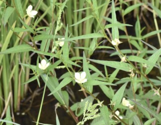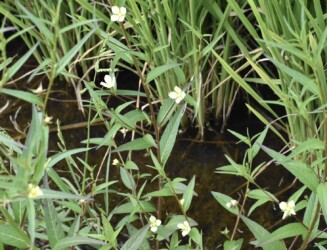 蟹江周辺ではこの季節になるとヒレタゴボウが田んぼの畔と水田の間にたくさん生えて花を咲かせます。