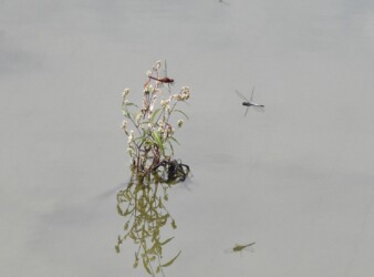 それでもギンヤンマなどの大きなトンボの連結態が産卵のためにとまると、そこから離れて別の場所に移動していきます。