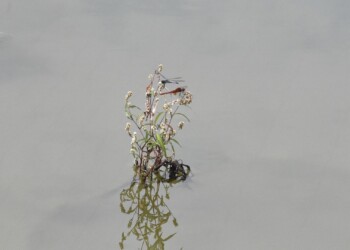 先日ショウジョウトンボとコフキトンボのとまる場所が同じになってしまった場面を見かけました。