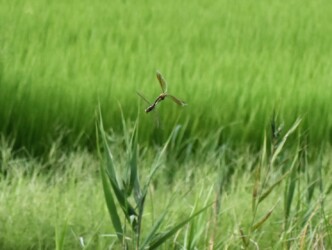 オスは田んぼの一角や川の橋と橋の間を縄張りにして飛翔しています。