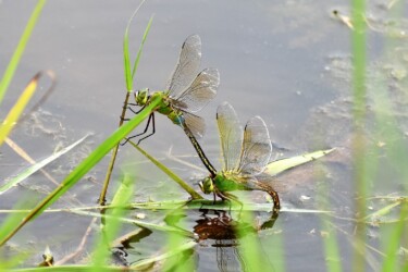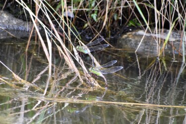 また浅瀬の田んぼや金魚養殖池の放棄された池では、水草や浮草の上でオスとメスの連結態が産卵しています。