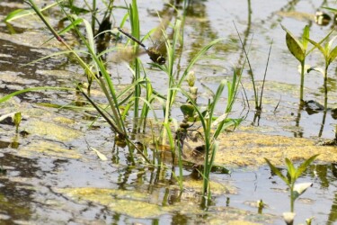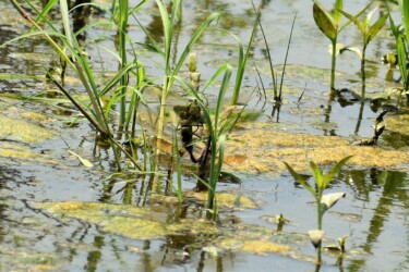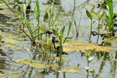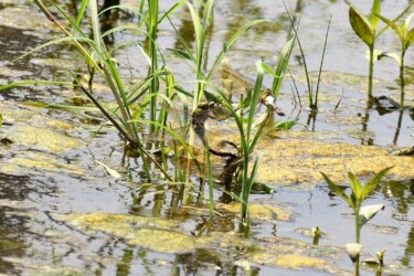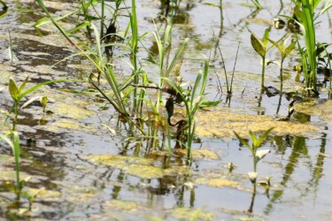 田んぼの一角を縄張りにしているオスは、田んぼのイネ1つ1つチェックしていきます。