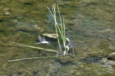上手くメスを捉えると交尾態になって、メスに精子を副性器から送り込むと、今度は連結態になって、いろいろな場所で産卵します。