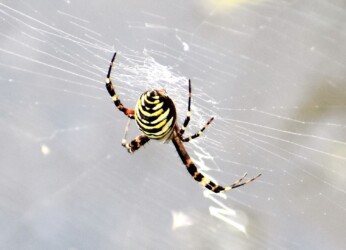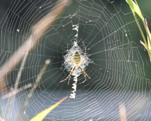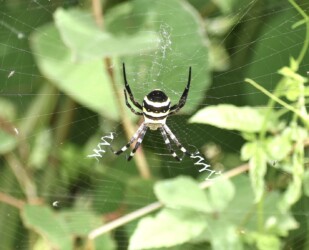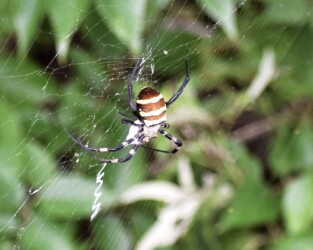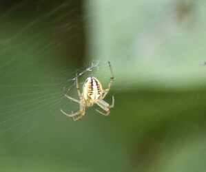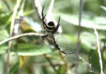 蟹江に戻って6月頃に日光川の土手や叢を歩いていると背中に黄色い大きな模様があるクモを見かけました。