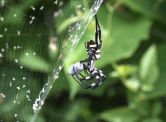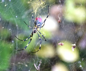 一年を通してみると、目立つクモにはコガネグモ、ジョロウグモ、ナガコガネグモがいます。