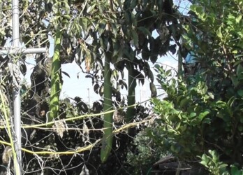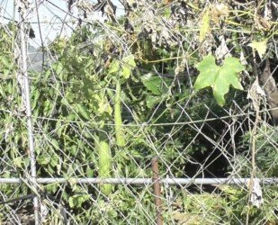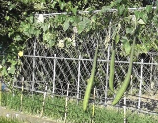 先日愛西市福原輪中を歩いていたら、昨年見かけていた場所でヘチマが生っているのを見かけました。