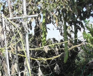 夏の日除けのために社宅の南側に竹を組んでアサガオ、ヒョウタンやヘチマを植えていたものです。