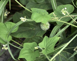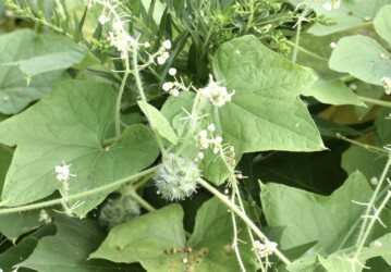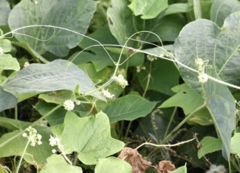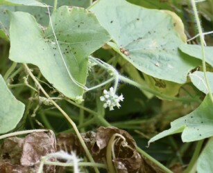 クズやヤブガラシは真夏に見かけることが多いのですが、カナムグラとアレチウリは秋になると花を咲かせ目立ちます。