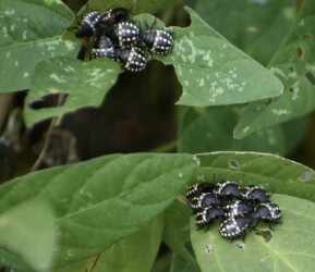 そのカメムシは小さいのと集まっている様子から、孵化してそれほどの期間が経っていないように思われました。