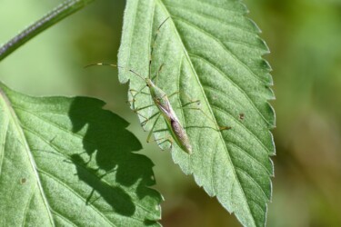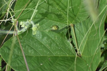 堤防下のアレチウリの葉に緑っぽいカメムシを見かけました。