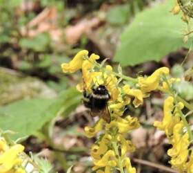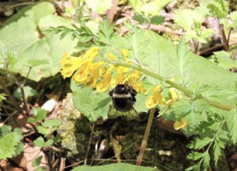 ミヤマキケマンの盗蜜をするマルハナバチ