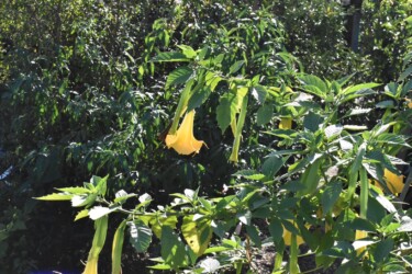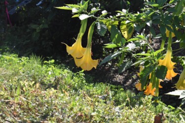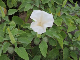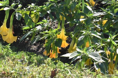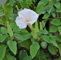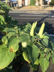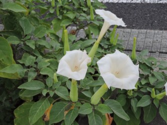 ところがチョウセンアサガオの仲間には、キダチチョウセンアサガオ属とチョウセンアサガオ属の2属があり、私が見かけたチョウセンアサガオはキダチチョウセンアサガオ属に入るようです。