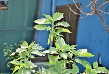 蟹江周辺では日光川の河口近くの土手下の民家の庭、愛西市福原輪中内の畑に生えています。