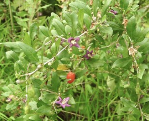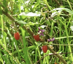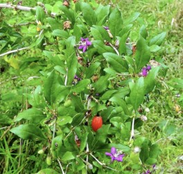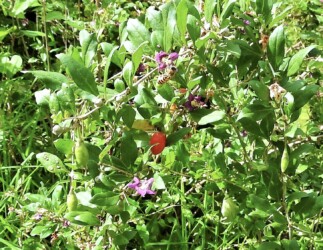 途中の畑や叢でときどき赤っぽい実をつけた植物を見かけました。
