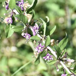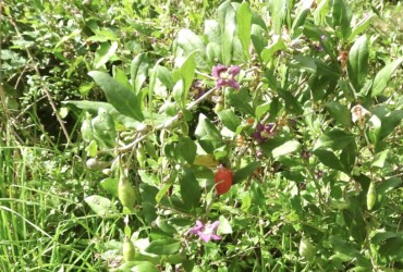 ウィキペディアには「クコは東アジア(中国~日本)原産のナス科の落葉低木。荒れ地などに見られ、夏から秋にかけて薄紫色の花を咲かせて、秋に赤い果実をつける。有用で、食用や薬用に利用される。~中略~ 日本では、土手や道ばたのやぶでよく見られるが、かって一時の漢方薬ブームで頻繁に採取され、見かける数が少なくなった。~中略~ 赤く熟した果実には、ベタイン、ゼアキサンチン、フィサリンなどが含まれ、強壮作用があり、酒に漬けこんでクコ酒にするほか、生食やドライフルーツでも利用される。薬膳として粥の具や杏仁豆腐のトッピングにもされる。また柔らかい若葉も食用にされ、軽く茹でて、お浸し、和え物、汁の実に調理されたり、サラダや料理のトッピングに利用される。」と記されています。