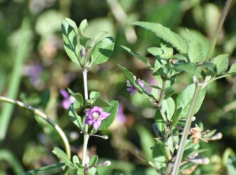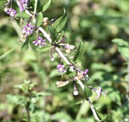 ムラサキシキブのような長い枝を伸ばしながら、薄い薄紫色の花を咲かせます。