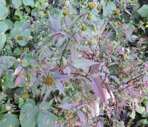 「野草・雑草の事典530種」(金田初代 洋一郎 西東社)には、コセンダングサについて「江戸時代に渡来した帰化植物ですが、原産地ははっきりしていません。舌状花がなく筒状花だけの黄色い頭花を、枝の先に1つずつつけます。」と記されています。またアメリカセンダングサについては「北アメリカ原産で、大正時代に渡来した帰化植物です。暗紫色を帯びた四角張った茎が直立し、羽状複葉の葉が対生します。」と記されています。