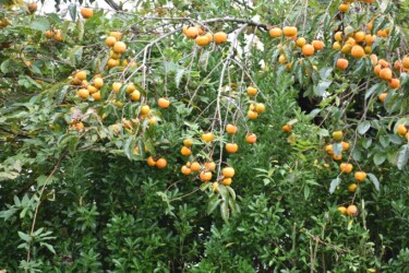 その後2022.11.19づけの「河北新報ONLINE」に「いびつな柿が発生 宮城県南の干し柿産地『大半が廃棄』と生産者がっくり」というタイトルで、「宮城県南で生産される柿に異変が生じている。柿が丸くならず、9割がいびつな形になっている地区もある。はっきりした原因は分かっていないが、4月の発芽以降の気象条件が影響した可能性がある。~中略~ 『柿を栽培して40年になるが、これほどの変形被害は初めてだ』。丸森町耕野地区の八島哲郎さん(60)がつぶやく。実は多くが二つや三つに割れ、一部が突き出しいているものもある。商品となるのは3000個ほど。例年の1割ほどに落ち込む。~中略~ とりわけ被害が多いのが干し柿用の『蜂屋』という品種。県ころ柿出荷協同組合(白石市)によると、変形は白石、角田両市と蔵王町で収穫前の5割で確認。丸森町は9割が被害を受けた。」と記されています。