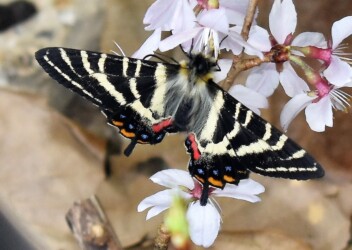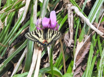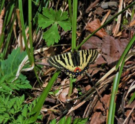 私は東北でヒメギフチョウを何度も見かけていること、カタクリの花にぶら下がって翅を開いて吸蜜している様子を話しました。