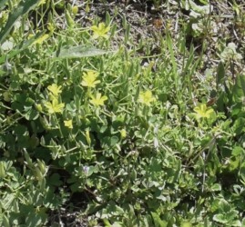 昔から生えている植物なので、「飢えを救った雑草たち 救荒雑草」(佐倉隆一 全国農村教育協会)を見ると「先端に黄色い5弁の花をつける。その後、先のとがった円柱形の果実がつき、熟すと皮がはじけてたくさんの種子を飛ばす。タチカタバミの類似食用種である。カタバミは酢漿草と書き、別名『スイモノグサ』ともいう。茎や葉にはシュウ酸が含まれて、かむと“酸いもの”という意味である。若い葉を塩で揉んで生で食べる。煮たり漬物にしても良い。」と記されています。