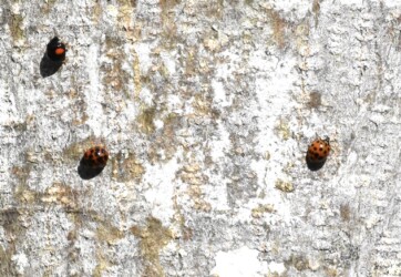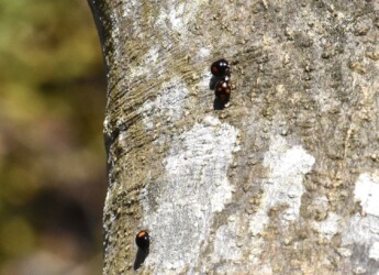 私が見かけた木の幹に集まっていたテントウムシはナミテントウで、これから集団で冬眠する直前だったのかも知れません。