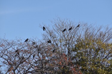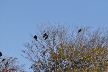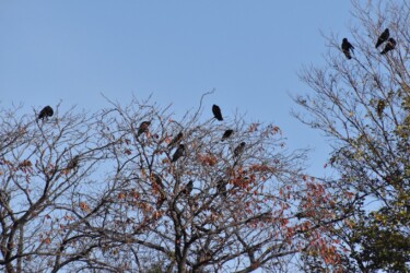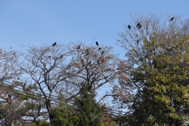 工場付近と五条川対岸の木々には、たくさんのカラスが常駐していて、一年中見ることができます。
