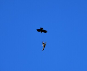 対してカラスは戦闘機のように小回りが利き、上からトビを攻撃しています。