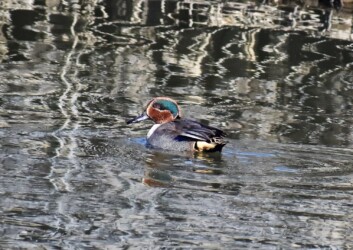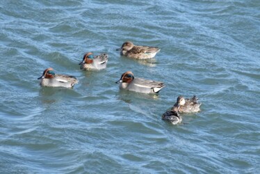10月初旬に見かけるコガモは、オスのモダンな模様の生殖羽のものは見かけません。