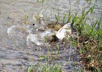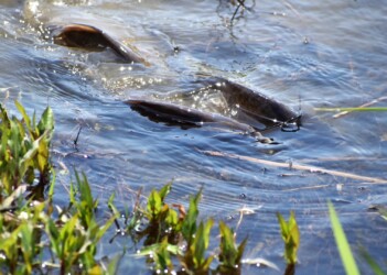 その時一緒に上がってきたコイ、ヘラブナやナマズも田んぼに入り込んでいきます。