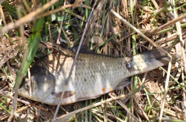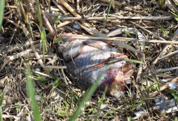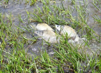 その後1週間ほど経って出かけてみると、その田んぼのヘラブナの多くは死んでいました。
