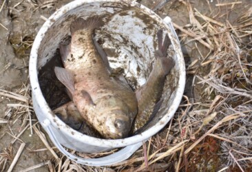 4月の田んぼでヘラブナ(ゲンゴロウブナ)の無残な姿を見た