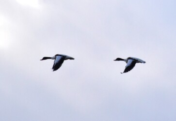 カモにとっては近くの川以外では、たくさんある金魚養殖池は餌採りには最適の場所のようです。