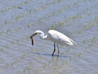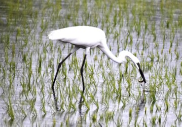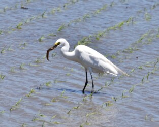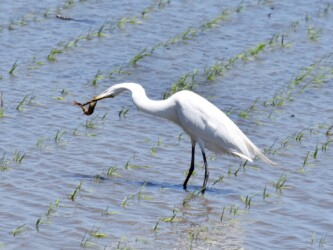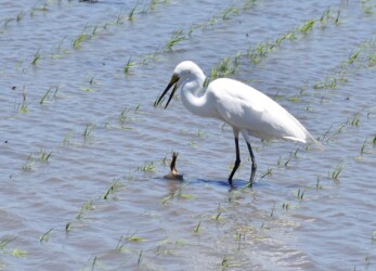 昨年の春に田植え前の水田で、ダイサギがドジョウを捕って飲み込もうとしている場面を見かけました。