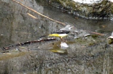 キセキレイは宝川土手下の用水路でときどき水辺の枯れ木などを伝いながら餌探しをしている光景を見かけます。
