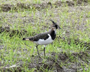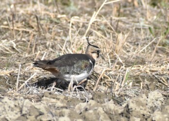 畑でタゲリの群れが散らばっている間をケリが歩いて横断していきました。
